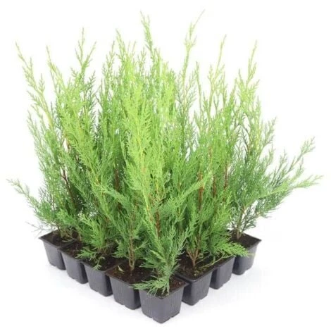 Kit haie composé de 20 jeunes plants en godets 400cm3 pour 20 mètres en linéaire ou 15 mètres en double. Arbre étroitement conique à colonnaire, à couronne dense, régulière et branchue jusqu’au sol. La flèche est toujours très marquée. La croissance du cyprès de Leyland est très rapide.
