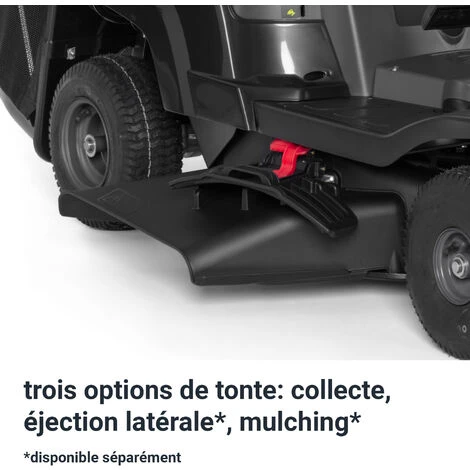 Les options de coupe sont les suivantes: ramassage; le mulching*; éjection latérale*.