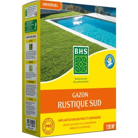 • Gazon Rustique Sud, avec engrais organique présente une esthétique classique et supporte les conditions rencontrées dans le sud de la France.