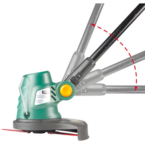 - La débroussailleuse fonctionne avec des lames et non avec des bobines de fils. Contrairement aux bobines de fils, les lames sur les appareils à batterie présentent l’avantage de nécessiter moins de torque et donc moins d’énergie et d’offrir ainsi une durée de fonctionnement ainsi qu’une puissance plus importante. Le manche télescopique verrouillable, le deuxième manche réglable, la tête de coupe inclinable dans 4 positions, et un arceau de protection des plantes complètent cet outil de jardinage professionnel