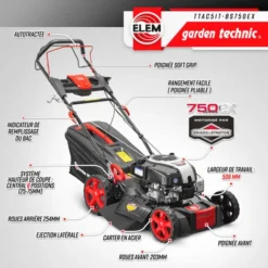 Tondeuse Thermique Autotractée Démarrage électrique 196cm3 51cm – FUXTEC FX-RM5196eS – 6CV 60L