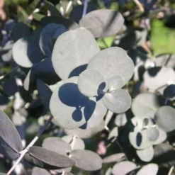 Arbre au port érigé puis étalé. Les fleurs blanc crème de l’eucalyptus apparaissent en ombelles durant l’été. Son feuillage est persistant. Les feuilles juvéniles sont elliptiques et de longue durée tandis que les feuilles adultes sont ovales et glauques.