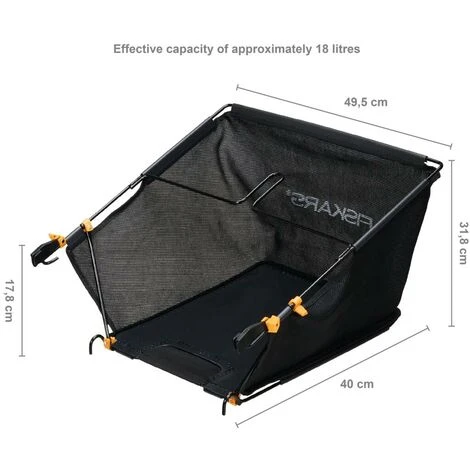 • Installation facile sans outils sur l’avant de la tondeuse, Poignée pratique pour une manipulation facile du bac