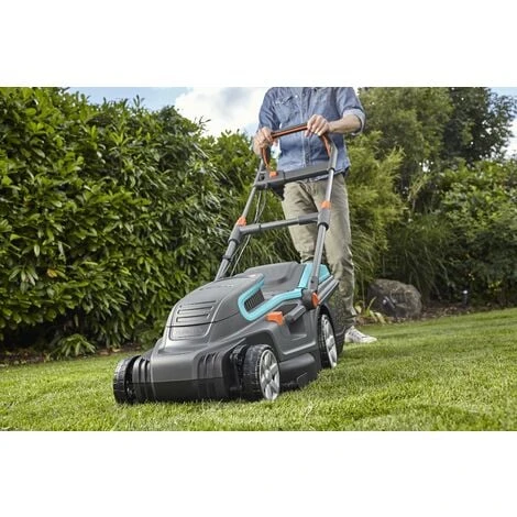 La tondeuse à gazon électrique GARDENA est équipée de la technologie QuickFit Plus pour un ajustement centralisé de la hauteur de coupe (5 positions de 20 à 60 mm).
