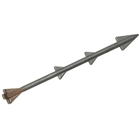 Conditionnés en boîte de 100, ces grappins servent à fixer rapidement de grandes surfaces de gazon synthétique sur un sol meuble de type terre, sable ou gravier. Une fois planté, le grappin se confond avec le dossier du gazon synthétique grâce à sa tête couleur marron. Espacez chaque grappin d’environ 1 mètre seulement en périphérie de votre projet, et enfoncez-les à ras du sol à l’aide d’un maillet. Sa longueur et ses trois crans dentés assurent une fixation solide et durable, supérieure à celle des agrafes.