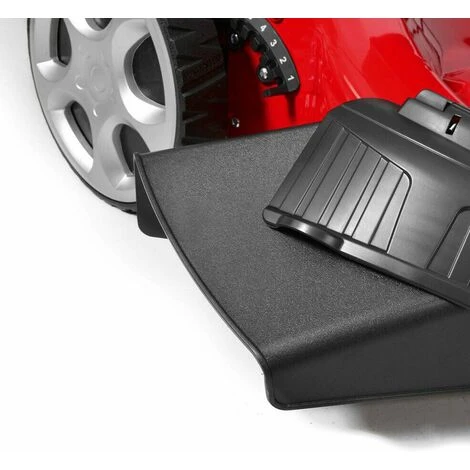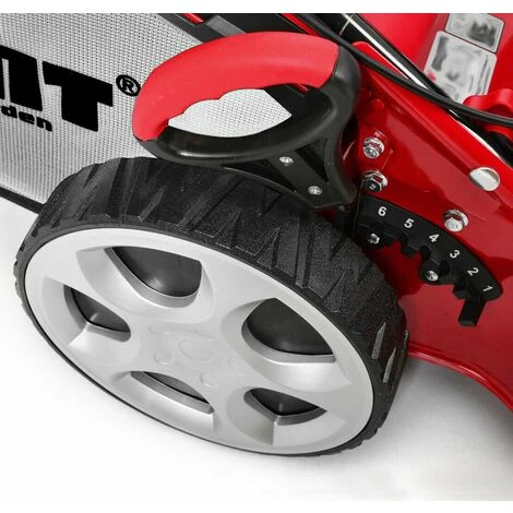 La tondeuse à gazon a 1800 watts et est très agile avec ses roues à roulement à billes et la roue avant à 360 °. Ainsi, vous pouvez facilement vous déplacer autour des arbres et le long des haies. Les grandes roues arrière au profil spécial vous assurent une bonne adhérence, même sur un terrain glissant. En utilisant le réglage de la hauteur de coupe sur 6 niveaux, vous pouvez définir la hauteur à laquelle tondre. Utilisez le levier pour le réglage en hauteur central.