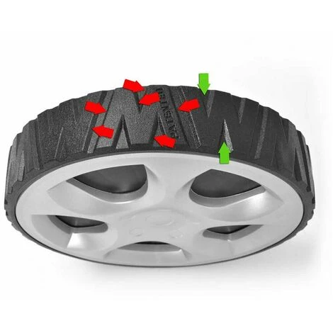 Roue avant 360 ° – La roue avant rend la tondeuse extrêmement maniable, facilite la tonte autour des arbustes et des arbustes et est particulièrement pratique pour les pelouses tortueuses.