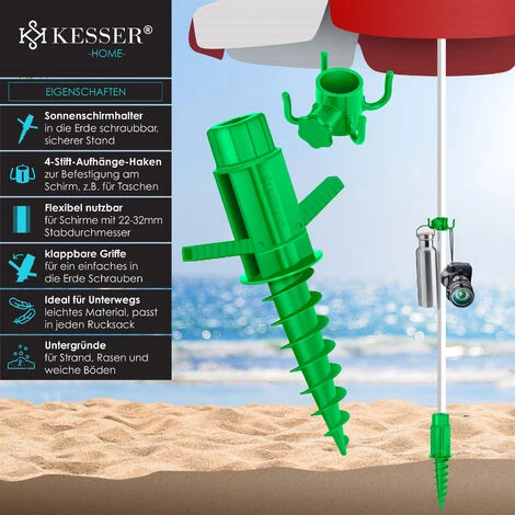 KESSER Support pour parasol, utilisation modulable, poignées rabattables, idéal pour les déplacements, pour les pelouses, la plage et les sols mous, multifonctions et suspension à 4 broches fournie
