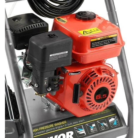 – Pompe axiale 3 pistons acier, tête de pompe en laiton, vanne by-pass incorporée moteur à essence sans plomb 6,5 HP
