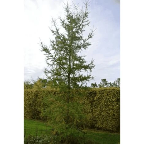 Grand conifère caduc à couronne conique et largement étalée et à branches horizontales. Les rameaux de l’année sont rougeâtres. Les cônes tout d’abord ovales du mélèze hybride prennent ensuite une forme de rosette à cause de leurs écailles fortement recourbées vers l’extérieur.