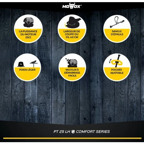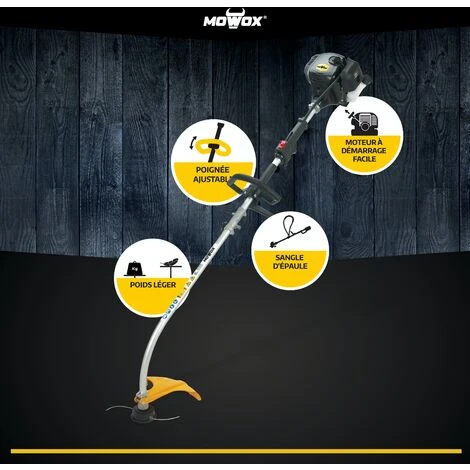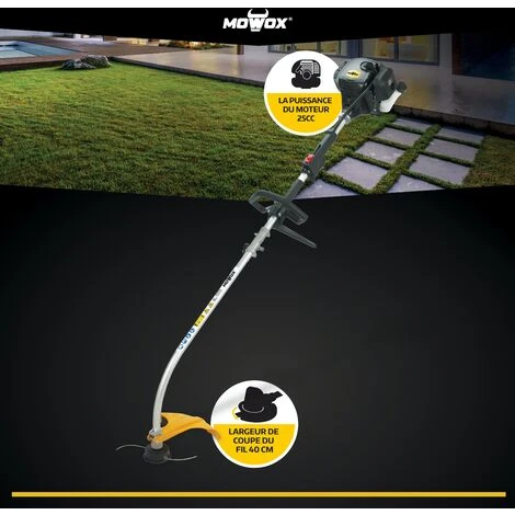 MOWOX PT25LH, Coupe Bordures Thermique 25CC, Tube Alu Courbé Et Détachable, 40cm De Coupe Fil Nylon 2mm à Alimentation Automatique