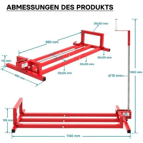 | Auxiliaires de montage | Allée Largeur 95cm, Largeur de la monture de roue 24cm, max. Angle d’inclinaison de 35 °, Rasentraktorheber BT-ML005 |