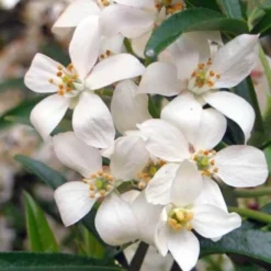 Arbuste touffu de port arrondi. Floraison blanche, très mellifère, d’avril à mai. Les feuilles de l’oranger du Mexique sont persistantes, vertes, vernisées, et palmées.