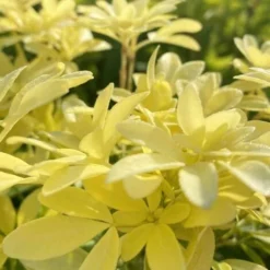 L’Oranger du Mexique ‘Sundance’ est un arbuste au feuillage persistant jaune et à floraison blanche printanière. Ces deux dernières caractéristiques en font une essence d’excellente qualité ornementale, en toute saison.