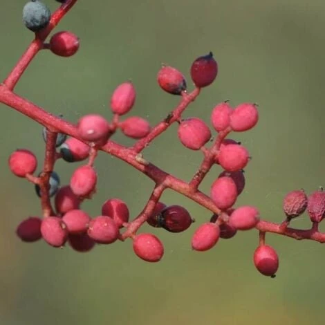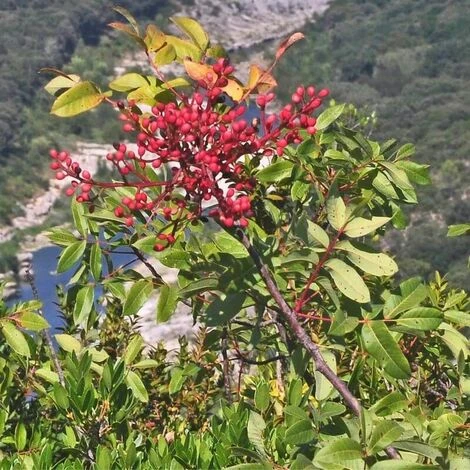 Arbuste à l’écorce lisse et gris cendré, les rameaux du pistachier térébinthe sont souples et d’une couleur vert olive. Ses fleurs sont insignifiantes et réunies en grappes en dessous des feuilles. Croissance lente.