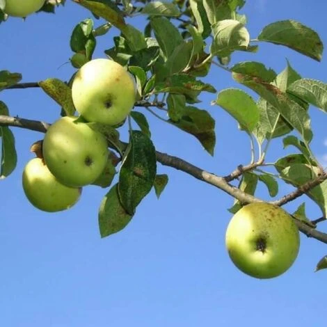 Petit arbre à branches d’abord érigées, puis s’écartant et devenant avec l’âge largement retombantes et épineuses. L’écorce du pommier sauvage est gris brun et crevassée dans la longueur et elle se desquame. Les fleurs sont visibles de mai à juin, de couleur blanchâtre à roses. Les pommes sont jaune vert, de saveur âcre et acide, comestibles après les premières gelées.