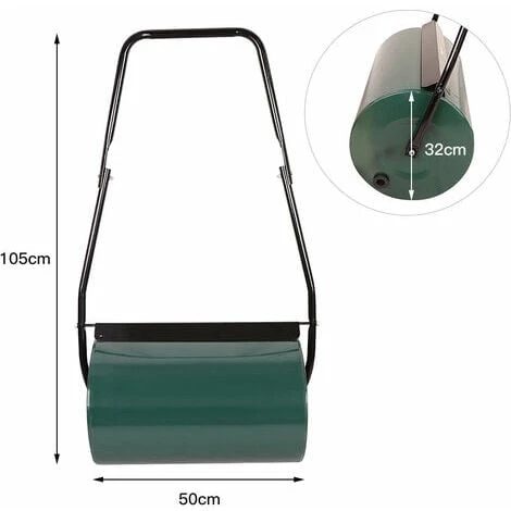 Skecten Rouleau à gazon 50 cm avec Brancard en Acier – Remplissage Eau ou Sable 38 L Vert