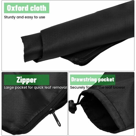 Le cordon de serrage réglable peut être ajusté pour s’adapter à différentes tailles de souffleuses à feuilles, ce qui rend le sac d’aspirateur compatible avec la plupart des souffleuses à feuilles.