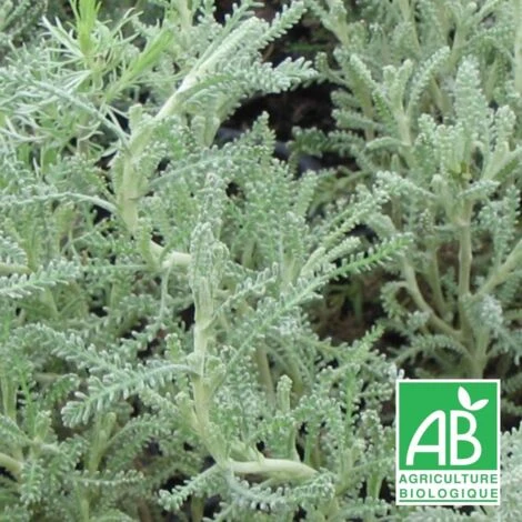La santoline grise est une jolie plante vivace aromatique au feuillage gris, finement découpé et parfumé. En été, de juin à août la plante se couvre de petites fleurs jaunes également parfumées. Variété non comestible.