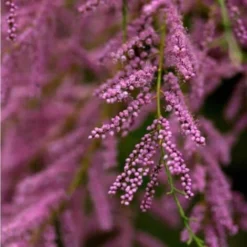 Gros arbuste très touffu fournissant une belle et abondante floraison en petites grappes roses au début du printemps. Le tamaris de printemps a un port assez érigé, avec de fines branches retombantes. Son bois est de couleur rouge mais devient plus foncé en hiver.